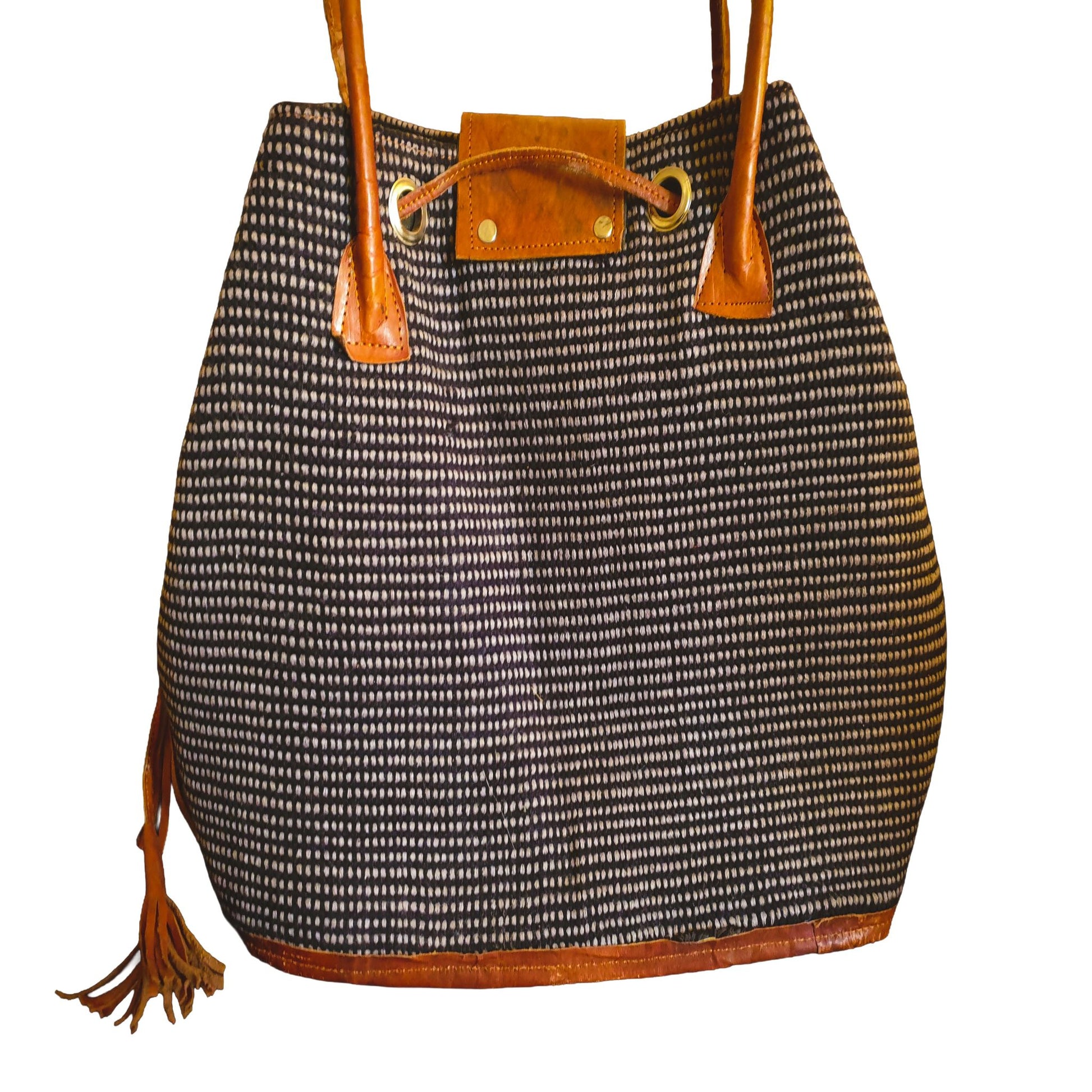 Sac Cabas en Raphia Naturel Tissé Main - Motif Pointillé Marron